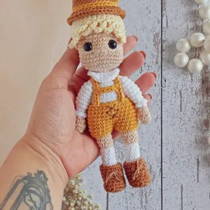 João: Se confeccionado com o material indicado (linha amigurumi tradicional e agulha 2mm) o boneco ficará com, aproximadamente, 18 cm (19 cm com o chapéu).