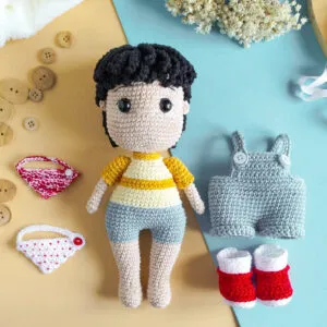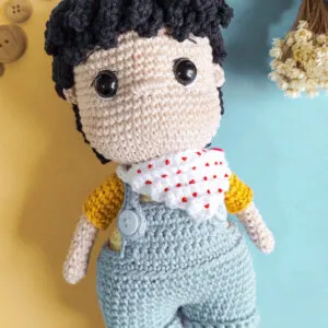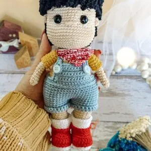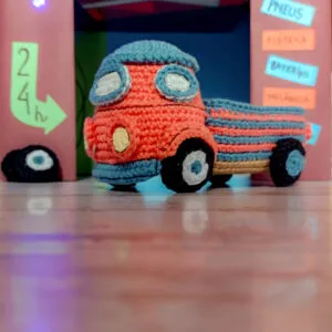 Se confeccionado com o material indicado (linha amigurumi tradicional e agulha 2mm) o boneco ficará com, aproximadamente, 24 cm e o caminhão com, aproximadamente, 9 cm de altura e 15 cm de comprimento.