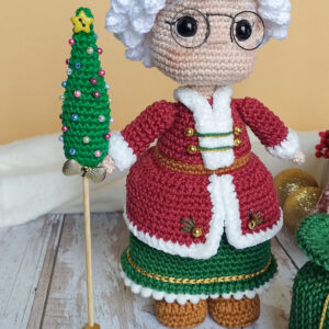 PDF com passo a passo, fotos, descrição de materiais e vídeos de apoio, contendo: receita para confeccionar o amigurumi da Mamãe Noel.